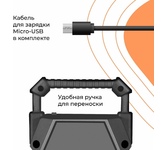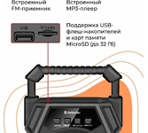 Bluetooth 5.3 - Новый стандарт увеличивает скорость передачи данных в 2 раза, радиус действия в 4 раза, а энергоемкость этого процесса существенно ниже, чем у предыдущих версий модулей беспроводной связи True Wireless Stereo (TWS) — возможность сопряжения двух отдельных колонок по Bluetooth в акустическую 2.0 систему Поддержка USB-накопителей и MicroSD-карт - Наличие слота для карт памяти стандарта Micro-SD или USB дает возможность воспроизведения музыкальных файлов без использования компьютера. Достаточно вставить в слот карту с записанными на ней WAV- или MP3-файлами – и можно наслаждаться музыкой Встроенный MP3-плеер Встроенный FM-приемник - Встроенный тюнер превращает колонку в полноценный радиоприемник. Вы всегда сможете послушать ваши любимые радиопередачи или музыку AUX-аудиовход - С помощью AUX-входа и кабеля 3,5-мм джек — 3,5-мм джек колонки можно подключить к компьютеру (плееру, мобильному телефону) и использовать как мощный динамик Прорезиненное покрытие - Софт тач покрытие придает пластику благоро