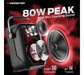 Портативная акустическая система MONSTER Traveler Mini.Компактная версия модели Traveler. В комплекте ремень для переноски и один беспроводной микрофон.Bluetooth - v 5.3/ output power-60W (peak)/ speaker size- 133mm*1 + 51mm *2/ input -BT/MON/TF/U DISK/MIC/ battery -7.4V/4000mAh/ water resistance- IPX4.