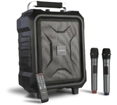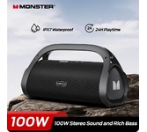 Портативная акустическая система MONSTER Adventurer Max (MS22101), чёрная. Мощная акустическая система с богатым глубоким басом. Удобная ручка и ремень для переноски, время работы до 24 часов, быстрая зарядка, не боится воды.bluetooth v 5.3/outpoot power 30W*2/speaker size 100mm*2 + 30mm*2/inpoot BT/TF Card/AUX IN/USB flash disk/Karaoke/battery 11.1V/4000mAh/water resistance IPX7