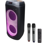 Суммарная звуковая мощность: 200. Цвет: черный. Акустический тип: 1.0. Тип электропитания: от сети/от аккумулятора. Тип карт памяти: microSD. Интерфейс подключения: Bluetooth/3.5Jack/USB. Емкость аккумулятора: 4400. Батерейки в комплекте: без батареек в комплекте. Отношение сигнал/шум: 70. Расположение регуляторов: на верхней панели/ на пульте ДУ. Особенности: 2 беспроводных микрофона в комплекте, многоцветная подсветка и пульт ДУ. Версия Bluetooth: v5.0. Тип аккумулятора: Li-Ion. Время зарядки: 2.5. Вес: 8100. Тип подсветки: RGB. Комплектация: Колонка, Адаптер питания, Аудио кабель, Пульт ДУ, 2 микрофона, Руководство пользователя. Материал корпуса: пластик. Габариты упаковки (ед) ДхШхВ: 0.375x0.37x0.785. Вес упаковки (ед): 9.76. Страна производства: Китай. Гарантия: 12 мес.. Частотный диапазон: 40 Гц - 20кГц. Размеры (ШхВхГ): 320 x 725 x 330 мм. Конструктивные особенности: поддержка карт памяти, стерео-вход AUX INPUT. Функциональные особенности: одновременное подключения двух колонок, подсветка. Подключение: