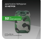 Архитектура 1.0 Макс.выходная мощность 8Вт Мощность каналов 1х8 Вт Интерфейс соединения Bluetooth 5.1 / MP3 (USB)/AUX Размер динамиков 52мм Диапазон воспроизводимых частот широкополосных динамиков 50 Гц - 18 кГц Питание USB / 1200 мАч / 3,7 В Материал корпуса пластик/ткань