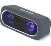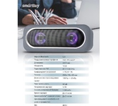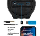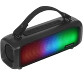 Портативная акустика Bluetooth , мощность (RMS) - 20 Вт, питание USB, Li-Ion аккумулятор, емкость аккумулятора - 2000 мАч, диапазон частот - 60–20000 Гц, светодиодная подсветка - 7 цветов, функция Hands free, дополнительный AUX-аудиовход.