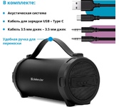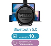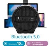 Портативная акустика, Bluetooth 5.0 , мощность (RMS) - 10 Вт, диапазон частот 70–20000 Гц , радиочастотный диапазон - 87.5–108.0 МГц, Li-Ion аккумулятор, емкость аккумулятора - 1500 мА·ч, встроенный FM-приемник, поддержка карт памяти Micro-SD, USB-флеш-накопителя, дополнительный AUX-аудиовход, ) акустику можно подключить к компьютеру (плееру, мобильному телефону) и использовать как мощный динамик, удобная ручка для переноски.
