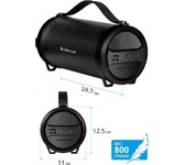 Звуковая схема: 2.0 Выходная мощность: 10 Вт Размер динамиков: 2*2" + 2 пассивных излучателя Bluetooth 5.3 Поддержка аудионосителей: USB/microSD Аудиовход AUX-in Воспроизведение форматов MP3, WAV Функция Hands Free FM-радио Функция True Wireless Stereo Встроенная батарея: 1200 мАч Время работы от аккумулятора: до 6 часов* Светодиодная подсветка Ремешок для переноски Цвет: черный Вес: 0.53 кг Размеры: 75(в) х 188(ш) х 67(г) мм