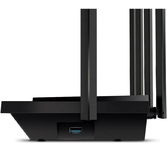 Wi-Fi-роутер TP-Link Archer AX73 AX5400 – это гигабитный маршрутизатор, работающий на двух диапазонах: 2.4ГГц и 5 ГГц. В первом случае скорость передачи данных по Wi-Fi сети может достигать 574 Мбит/с , во втором – 4800 Мбит/сек. дополнительные возможности С помощью функции «Умное подключение» или «Smart Connect» пользователь переводится на менее загруженный канал, что позволяет сохранять подключение на высоком уровне. характеристики Роутер оснащён шестью внешними антеннами и одной внутренней.