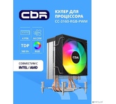 [Охлаждающие системы CBR] CBR-CC-3160-RGB-PWM Кулер для процессора, Al+Cu, 3 heat pipes, Socket 775/1366/1155/1156/1150/1151/1200/1700/AM2/АМ2+/АМ3/AM3+/FM1/FM2/AM4/AM5, TDP 160W, 90mm Fan, 2600RPM, HB, RGB, PWM, 32db