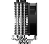 Кулер для процессора ID-COOLING SE-903-XT рассчитан на работу в составе универсальных офисных и домашних компьютеров. Модель совместима с CPU, для установки которых используется один из 7 сокетов - AM4, LGA 1150, LGA 1151, LGA 1155, LGA 1156, LGA 1200 или LGA 1700. Устройство обеспечивает рассеивание мощности до 130 Вт. Особенность внешнего вида кулера - эффектная многоцветная подсветка. Кулер для процессора ID-COOLING SE-903-XT оснащен легким алюминиевым радиатором, имеющим никелированное покрытие. Необходимую эффективность отвода тепла помогают обеспечивать 3 тепловые трубки, диаметр которых равен 6 мм. Кулер укомплектован 92-миллиметровым вентилятором, максимальная частота вращения которого довольно существенна - 2200 оборотов в минуту. На минимальной скорости лопасти вентилятора за минуту делают лишь 500 оборотов. Кулер работает тихо: пиковый уровень шума устройства равен лишь 25.8 дБ. При необходимости интенсивность теплоотвода можно увеличить, установив второй вентилятор. В комплектацию кулера включены