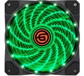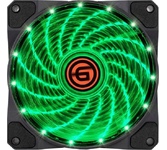 Вентилятор 12 см с LED подсветкой зеленого цвета. Количество светодиодов 15. Антивибрационные прокладки.