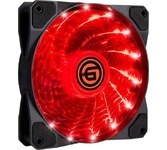 Вентилятор 12 см с LED подсветкой красного цвета. Количество светодиодов 15. Антивибрационные прокладки.