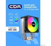 [Охлаждающие системы CBR] CBR-CC-2115-RGB-PWM Кулер для процессора, Al+Cu, 2 heat pipes, Socket 775/1155/1156/1150/1151/1200/1700/940/AM2/АМ2+/АМ3/AM3+/FM1/FM2/AM4/AM5, TDP 115W, 90mm Fan, 2600RPM, HB, RGB, PWM, 32db