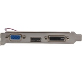 Объем: 2 Гб/ Шина: 64 бит/ Память: GDDR3/ DirectX 12, OpenGL 4.5/ Порты: DVI, HDMI, VGA/ Интерфейс: PCI-Express x16/ Код: GT 710 2GD3H LP