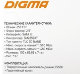 Емкость: 256; Форм-фактор: M.2 2280; Интерфейс: SATA 3.0 (6 Гбит/с), обратная совместимость с SATA 2.0 (3 Гбит/с); Флэш-память NAND: TLC 3D NAND; Контроллер: SM2258XT+B16A; Скорость последовательного чтения, Мбайт/с: 561; Скорость последовательной записи, Мбайт/с: 500; Среднее время наработки на отказ, часов: 1 800 000; Рабочее напряжение, В: 3,3±10%; Размеры (Д x Ш x В), мм: 80x22x2.2