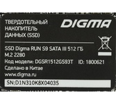 Накопитель SSD Digma SATA III 512Gb DGSR2512GS93T Run S9 2.5"