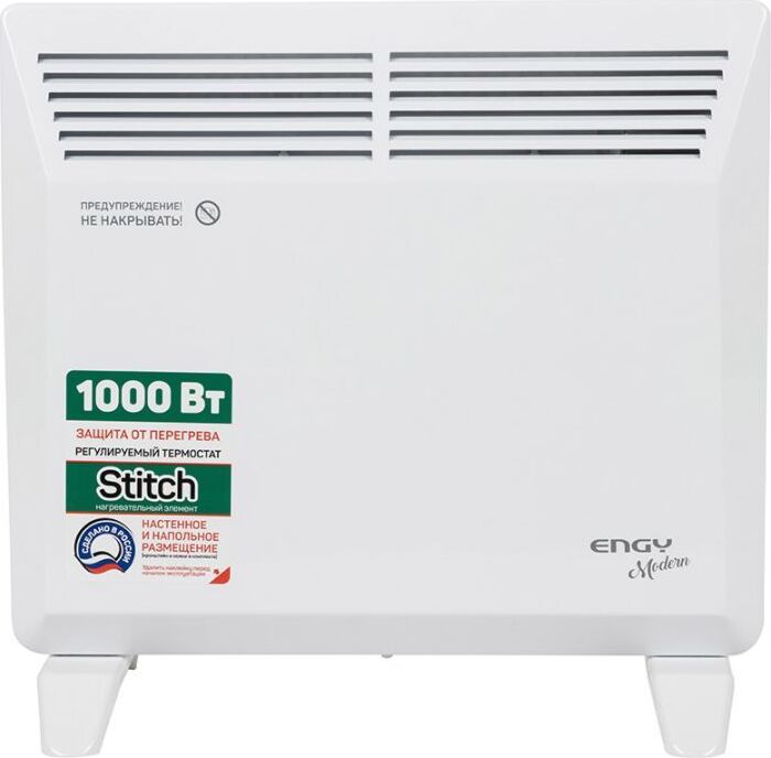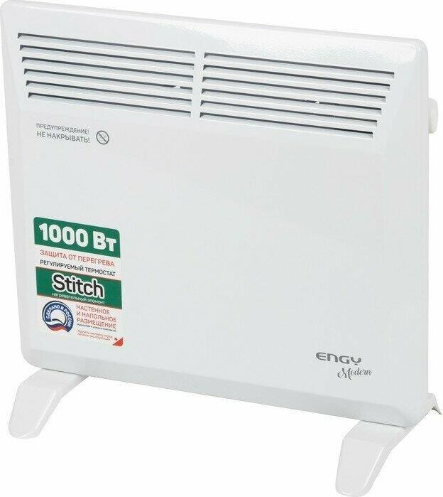 Серия Modern Мощность 1000 Вт Современный дизайн Защита от перегрева Световой индикатор работы Регулируемый термостат. Нагревательный элемент Stitch. Настенное и напольное размещение. Размеры конвектора (Ш*В*Г) 46*44,2*22,3 с ножками / без ножек 46*40*8,3 см. Площадь обогрева до 15 м2. Класс электрозащиты I. Степень защиты IP20. Экологичный, экономичный, бесшумный. Гарантия 12 месяцев. Напряжение 220-240В 50Гц.