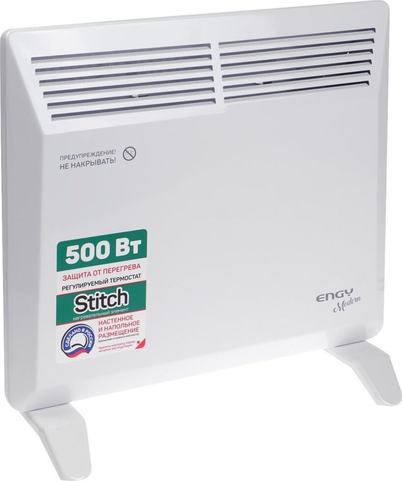 Мощность 500 Вт. Современный дизайн. Защита от перегрева. Световой индикатор работы. Регулируемый термостат. Нагревательный элемент Stitch. Настенное и напольное размещение. В комплекте ножки. Размеры конвектора (Ш*В*Г) 46*44,2*22,3 с ножками / без ножек 46*40*8,3 см. Площадь обогрева до 10 м2. Класс электрозащиты I. Степень защиты IP20. Экологичный, экономичный, бесшумный. Гарантия 12 месяцев. Напряжение 220-240В 50Гц.