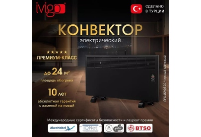 Конвектор IVIGO Электрический конвектор EPK4590E20 Черный матовый