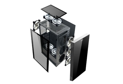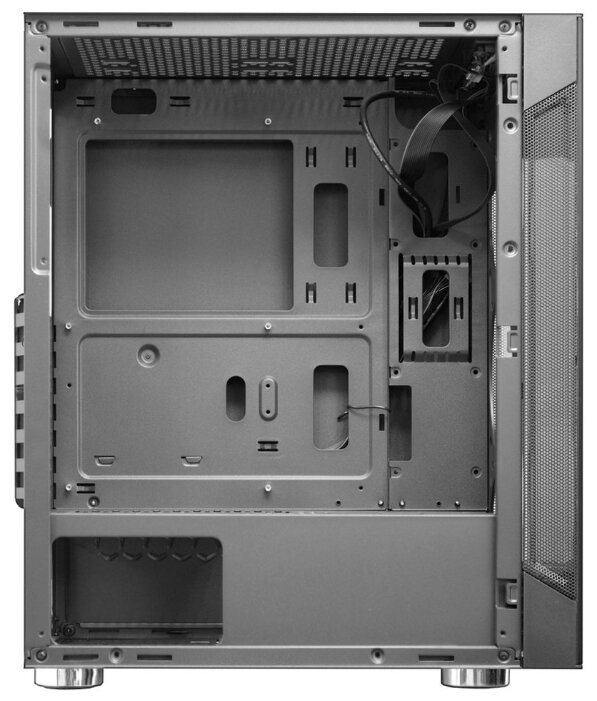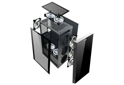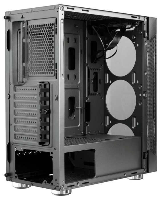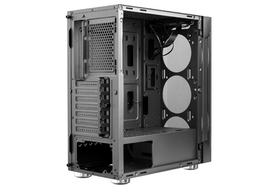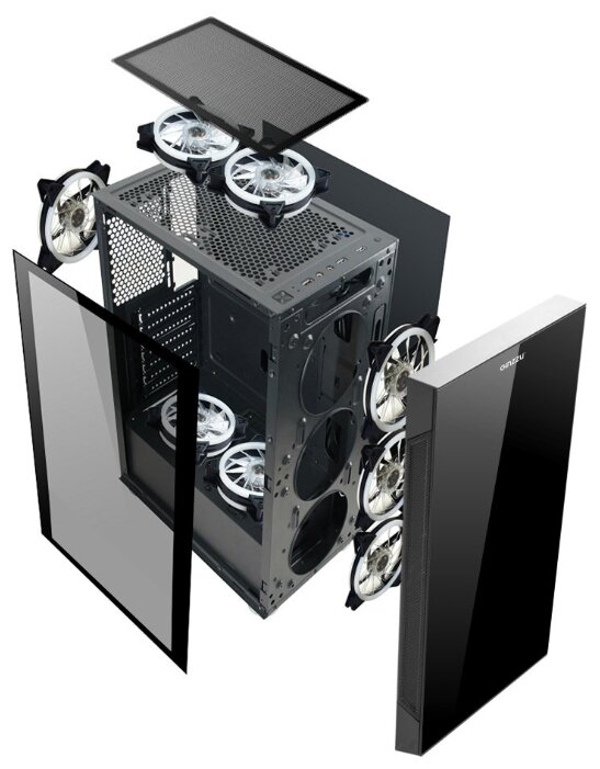 Формат шасси mATX/ATX черного цвета. Прочное шасси из стали с качественной завальцовкой. Разъем USB 3.0, три посадочных места для SSD. Боковая и передняя панель из закаленного тонированного стекла. Съемная корзина для HDD, кабельные каналы. Блок питания в отдельном воздуховоде, фильтр забора воздуха снизу. Возможность установки до 8-ми вентиляторов, фильтр забора воздуха сверху.