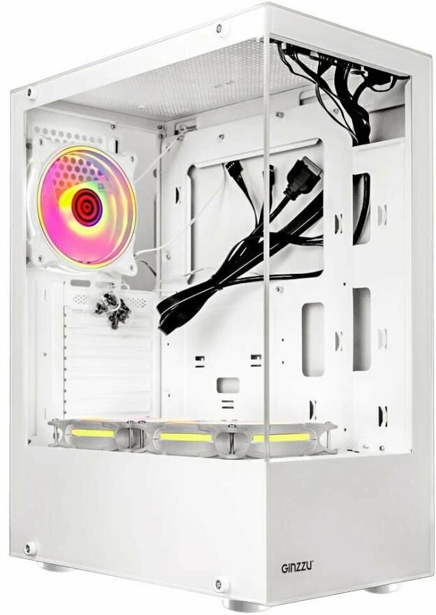[корпус] Ginzzu CL310 ATX FAN 3*12LD4 FRGB передняя панель Стекло Белый
