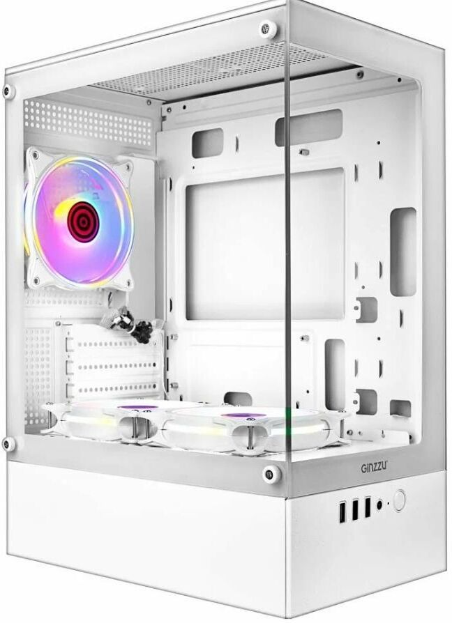 [корпус] Ginzzu CL485 mATX FAN 3*12LD4 передняя панель Стекло Белый