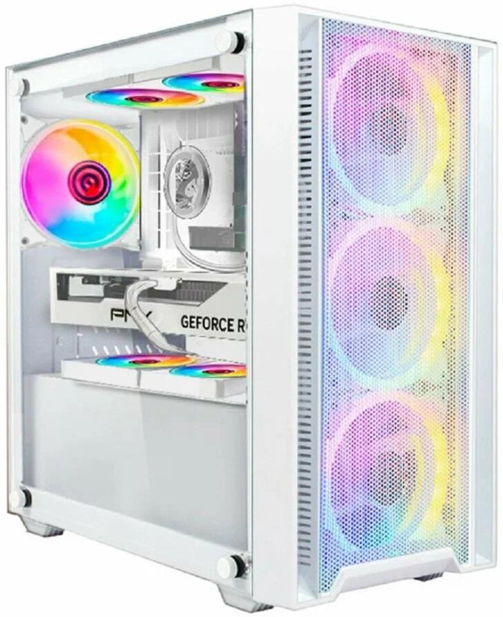[корпус] Ginzzu CL640 mATX FAN 4*12FRGB передняя панель Сетка Белый