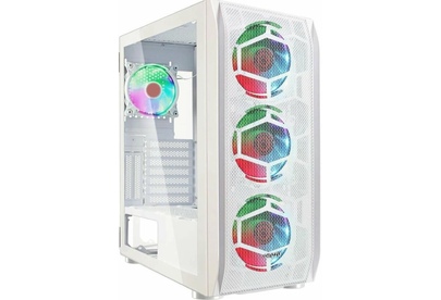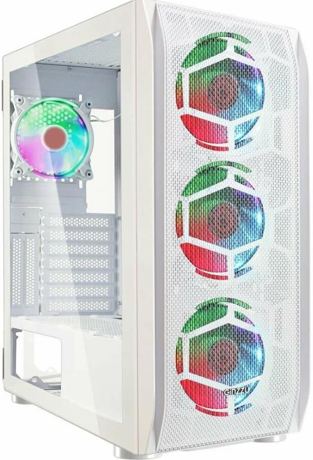 [корпус] Ginzzu GL 390 боковая дверца закаленное стекло на петлях на магнитах, controller CRC10, 4* 12R6W FAN 12CM RGB Белый
