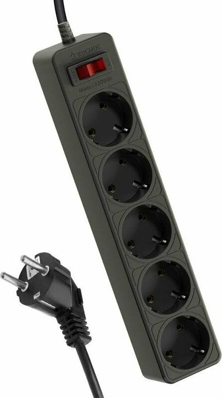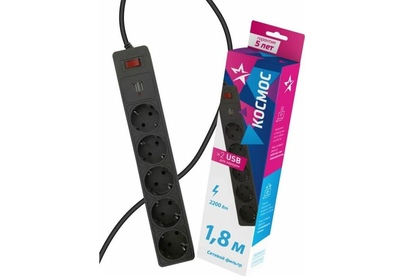 Сетевой фильтр(варистор,терморазмыкатель),1,8м, на 5 гнезд с заземлением, сечения провода - 3*0,75мм2,Медь 100%,Индикатор сети. Номинальный ток 10А, максимальная мощность - 2200Вт.