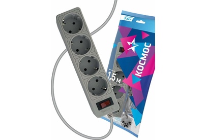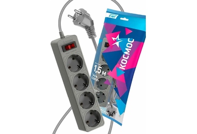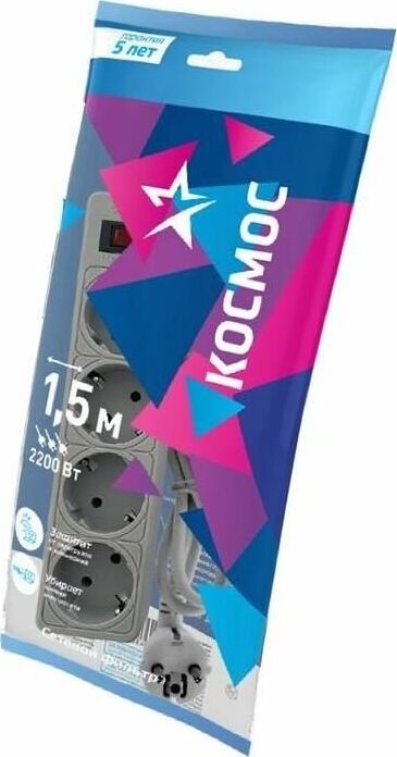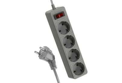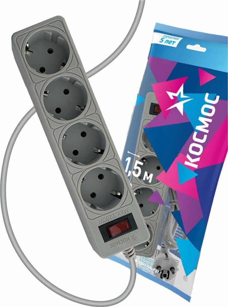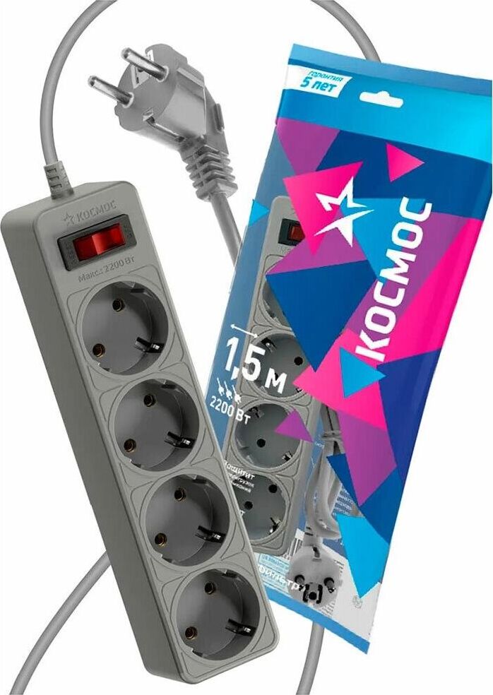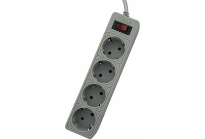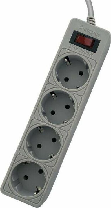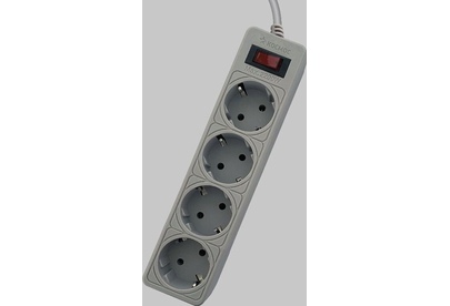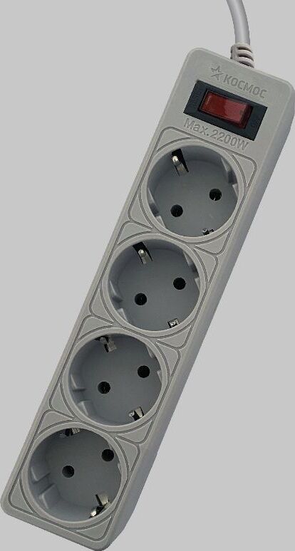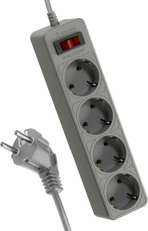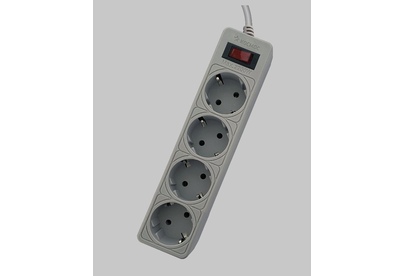 Сетевой фильтр серый на 4 гнезда с заземлением. Диаметр сечения провода - 3*0,75мм?. Индикатор сети. Номинальный ток 10А, максимальная мощность - 2200Вт. 5 лет гарантии