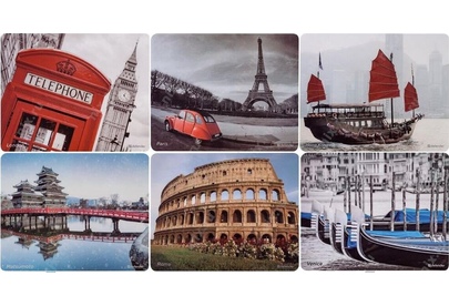 Ультратонкий коврик, материал: PP + клейкая основа + защитная пленка, антибактериальное покрытие, размер: 240 x 190 x 0.4 мм, ассорти: 6 видов.