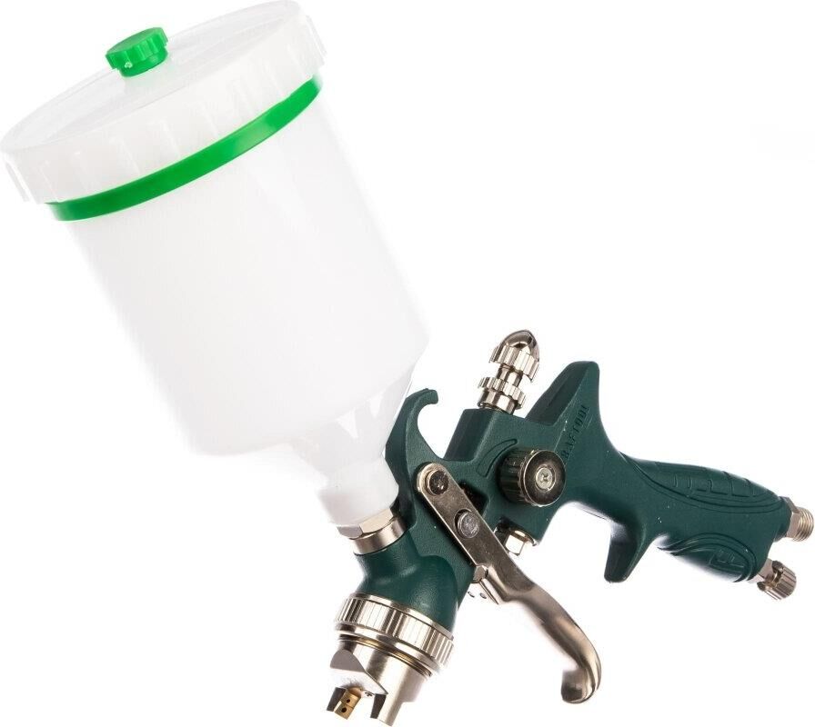Цвет: зеленый. Комплектация: Краскопульт, бачок, переходник, пластиковый фильтр, инструмент для обслуживания краскопульта.. Вес нетто: 0.8. Расход воздуха: 220. Сопло: 1.4. Объем бака: 0.6. Материал бака: пластик. Посадочный размер (для коннектора): 1/4. Расположение бака: верхнее. Технология распыления: LVLP. Коннектор: быстросъем. Габариты упаковки (ед) ДхШхВ: 0.225x0.125x0.13. Вес упаковки (ед): 0.6. Страна производства: Тайвань. Гарантия: 12 мес.. Давление: 3 - 4 Бар. Сопло: 1.4 мм. Давление: 3 - 4 Бар. Объем бака: 0.6 л. Вес нетто: 0.8 кг. Расход воздуха: 220 л/мин