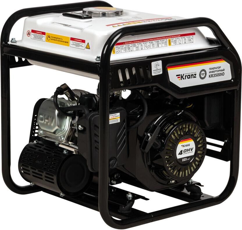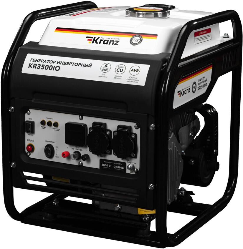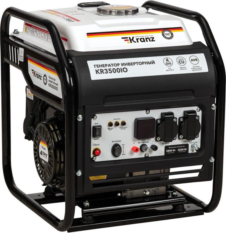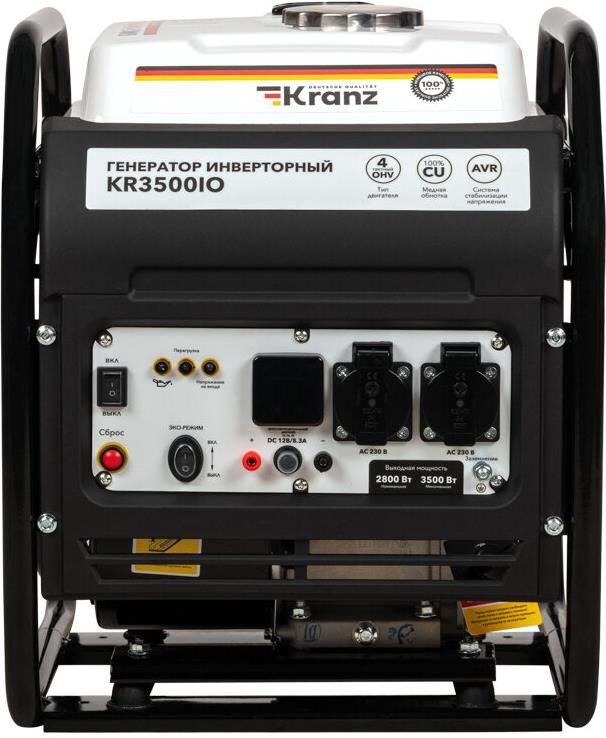 KRANZ (KR-16-1143) Генератор инверторный KR3500IO, 3,5кВт, 230В, 7л, открытый корпус, ручной старт