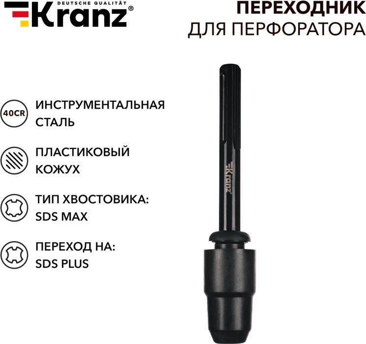 KRANZ (KR-91-0231) Переходник для перфоратора, пластиковый кожух, SDS MAX на SDS PLUS