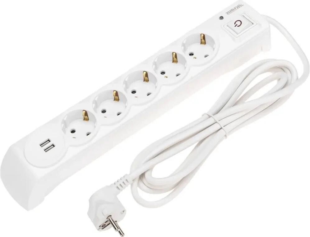 KRANZ Сетевой фильтр 13-4700 3м (5 розеток) белый (коробка)