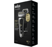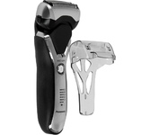 Бритвенная система из 3 независимых дугообразных сеток Сенсорная технология бритья, Сухое/влажное бритье, Линейный двигатель 13000 об/мин. Время зарядки - 1 час Цвет: черный с зеркальными вставками