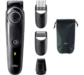 Триммер BRAUN, для бороды и усов, от аккумулятора, сухое, 2 насадки, влажная очистка