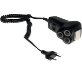 Питание от сети 220В, съемная тройная бреющая головка с плавающими ножами, самозатачивающиеся ножи из высококач. стали, кол-во оборотов двигателя в мин от 2400 до 2900, мощный и малошумный двигатель, триммер для подравнивания висков и усов...