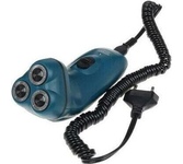 Тип - роторная. Тип питания сеть - 110-220В. Количество бритвенных головок - 3. Выдвижной стригущий блок (триммер) для подбривания висков и усов. Номинальная потребляемая мощность 3Вт., Двухдорожечные (сдвоенные) ножи увеличивают интенсивность бритья за счет большей площади охвата.