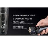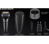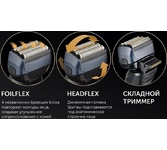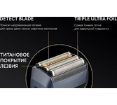 Электробритва бритва сетчатая с 4 лезвиями. 7D система повторений контуров лица. Detect Blade - Точное направляющее лезвие для среза даже самых коротких волосков. Triple Ultra Foil - Самая тонкая сетка для идеальной гладкости. FoilFlex - 3 независимых бреющих блоков повторяют контуры лица, создавая улучшенное соприкосновение с кожей. HeadFlex – динамичная головка бритвы подстраивается под анатомическое строение лица. Титановое покрытие лезвий. Подходит для сухого и влажного бритья. Степень влагозащиты IPх6 – герметичный корпус Мощный перезаряжаемый Li-ion аккумулятор 800 мА. 80+ мин бритья. Полная зарядка 90 мин. Быстрая зарядка на одно применение - 5 мин. Digital smart дисплей. Работа от сети и от аккумулятора. Складной триммер. Travel Lock. Комплектация: зарядная база, защитная крышка, твердый чехол для хранения и перевозки, щеточка для очистки, адаптер, шнур 1.2м Мощность: 5Вт