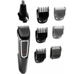 Количество насадок в комплекте: 6. Питание: от сети. Время работы от батарей (max): 60. Время заряда (max): 16. Самозатачивающиеся ножи: есть. Индикатор заряда: есть. Габариты упаковки (ед) ДхШхВ: 0.19x0.143x0.081. Вес упаковки (ед): 0.31. Страна производства: Индонезия. Количество установок длины: 5. Материал/покрытие лезвий: нержавеющая сталь. Насадки: Насадка для носа и ушей; триммер для бороды; бритвенная насадка. Способ регулировки длины: смена насадок. Гарантия: 12 мес.. Установка длины волос: от 0.5 до 5 мм. Цвет: черный. Дополнительные характеристики: промывка ножей под водой. Корпус: нескользящие вставки на рукоятке. Назначение: для бороды, для носа и ушей, для усов. Время заряда до: 16 ч. Питание: от сети. Время работы до: 60 мин. Количество насадок: 6 шт. Особенности: промывка ножей под водой. Установка длины волос: от 0.5 до 5 мм
