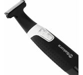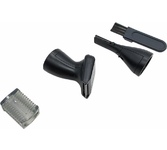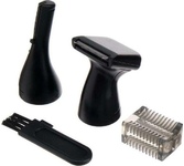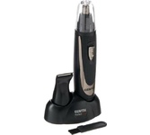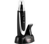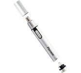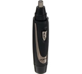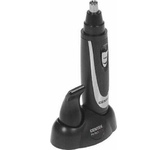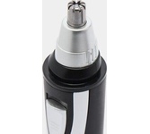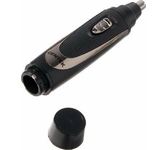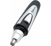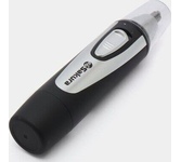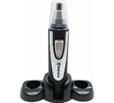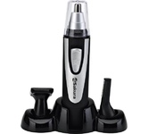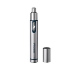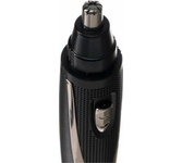 Триммер универсальный, 4 насадки (круглая - для носа и ушей; плоская горизонтальная и плоская вертикальная - для висков, бороды, усов, бровей; 2-сторонний гребень для выравнивания волос на 2 мм / 4 мм), острые стальные лезвия, питание от 1хАА (в комплект