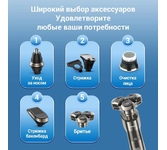 3-х ножевая, аккумуляторная электробритва с системой объемного бритья Мощность 5 Вт Роторная система бритья Система независимых головок Качественные стальные ножи Встроенный триммер Автономные режим 50минут Аккумуляторный режим Двухдорожечные ножи