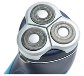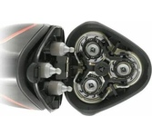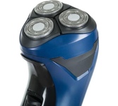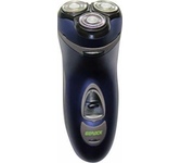 Акк/сетевая, 3-х ножевая. Мощность - 4Вт, время зарядки - 8ч, работа от аккумулятора или от сети, самозатачивающиеся лезвия, система объемного бритья, влагозащищенная, автономный режим работы 45 мин, откидной триммер.