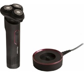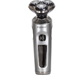 имеет высокоскоростной двигатель постоянного тока с серебристо-палладиевыми щетками -Аккумуляторно-сетевая -Номинально-потребляемая мощность 5Вт Аккумуляторы постоянного тока напряжением F63,7 В, 650 мА/ч -Время полной зарядки аккумуляторов -1ч -Длительность рабочего цикла без подзарядки -1 ч -Led дисплей: Время (оставшееся время работы) Значок блокировки включения Travel lock Значок зарядки Значок батарея полностью разряжена Значок загрязнения ножей -имеет блокировку от случайного включения (travel lock) -шнур для зарядки USB-Type-C -входящие параметры для зарядки 5 В, 1 А -Влагозащищенность IPX6, ножевой блок можно мыть под струей воды -ножевой блок легко снимается , отдельно от корпуса бритвы -покрытие хром -двурядные стальные ножи -имеет встроенный триммер