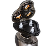 Для влажного и сухого бритья. Защита от попадания воды IPX7 (можно промывать в воде). 3 плавающие бреющие головки. Съемный бреющий блок на магнитах. Самозатачивающиеся двойные лезвия из высокопрочной стали. LED дисплей (уровень заряда / блокировка включения / очистка). Функция блокировки от случайного включения. Выдвижной триммер. Мотор 5 Вт. Li-Ion аккумулятор (800 mAh) (зарядка 90 мин, работа 60-70 мин), USB Type-C кабель