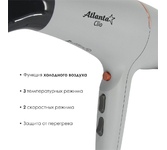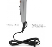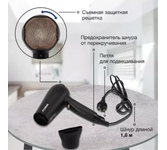 Мощ:1400 Вт Корпус из термост. пласт. 2 режима температуры потока воздуха 2 режима мощности потока воздуха Насадка-концентратор для укладки волос Холодный обдув для завершения укладки и фиксации прически Складная ручка Авто отключение при перегреве Защита
