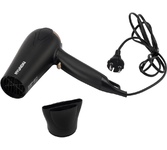 1400-1600 Вт, 3 температурных режима, 2 скорости воздушного потока, кабель питания общей длиной 1,8 м, насадка-концентратор, защита от перегрева. Цвет: чёрный/серебро.