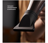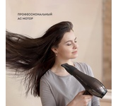 Мощность 2200Вт. Професcиональный АС мотор. 2 скорости потока воздуха. Функция "Холодный воздух". 3 температурных режима. Насадка-концентратор.