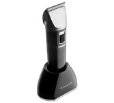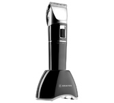 Фиксированные лезвия из высококачественной стали с титановым покрытием. Керамические подвижные лезвия. Установка длины поворотом корпуса 0.8 мм., 1.4 мм., 2.0 мм. 4 съёмные насадки 3 мм., 6 мм., 9 мм., 12 мм. Турборежим. Время заряда батареи 1,5 часа. Время непрерывной работы 1 час. LED-дисплей. Поворот базы на 360 °С. Индикация уровня заряда. Возможность работать от сети и от аккумулятора. Литиевая батарея 1*700 мАч. Удобная подставка для подзарядки и хранения. Аксессуары: щёточка, смазочное масло. Мощность 3 Вт. Электропитание: 220-240 В., ~50-60 Гц.