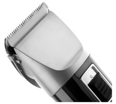 Машинка для стрижки Galaxy LINE GL 4178, серебристый, аккумуляторный, 2000 мА*ч, 3 скорости, лезвия из керамики и стали с титановым покрытием, LED дисплей, работа от аккумулятора и от сети, зарядка до 4 часов, работа до 3 часов, класс влагозащиты IPX0, регулировка длины лезвия (от 0.8 до 2 мм), защита от перегрева, 4 насадки-гребня: 3,6,9,12 мм, подставка, масло, провод для зарядки, щетка для очистки