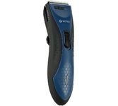 Машинка для стрижки волос. Материал лезвий: высококачественная сталь, Число насадок 1шт, Число установок длины: 6, Максимальная длина стрижки - 18 мм, Минимальная длина стрижки 3 мм, Питание от аккумулятора (NiMh 1x1,2V AA 600mAh), Время автономной работы до 35 минут, Время зарядки 8 часов, Способ регулировки длины: телескопическая насадка, Функция филировки. Цвет: Синий/черный.