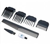 Мощный мотор Регулируемый рычаг управления лезвием Лезвие из нержавеющей стали 4 насадки-гребня 3-6-9-12 мм Мощность: 12 Вт Напряжение: 220 -240 В, 50-60 Гц В комплекте: Ножницы Расческа Масло Щеточка для очистки Состав (материал): пластмасса, металл. Длина шнура 1,65 м